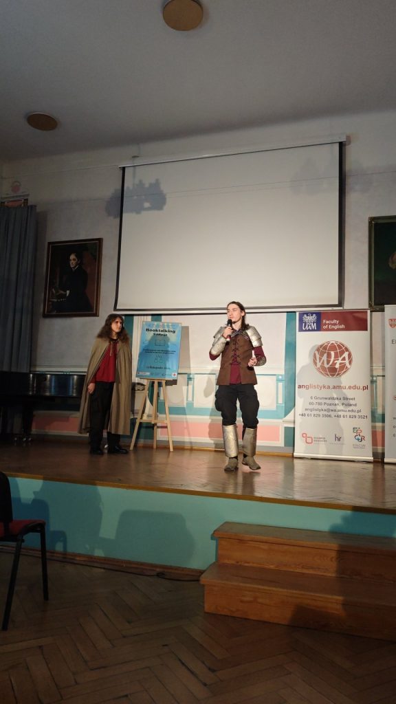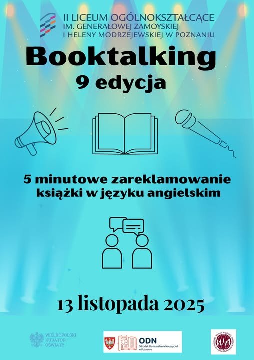 W dniu 13 listopada 2025r. uczniowie Jan Kroczak z klasy 1P i Radosław Lenczewski z klasy 5PT reprezentowali naszą szkołę w IX edycji Międzyszkolnego Konkursu Czytelniczo-Językowego BOOKTALKING organizowanego przez II Liceum Ogólnokształcące im. Generałowej Zamoyskiej i Heleny Modrzejewskiej w Poznaniu. Konkurs polegał na ustnej prezentacji książki w j. angielskim. Uczniowie, pod opieką p. Katarzyna Smulskiej-Perez, zdecydowali się odegrać jedną ze scen z książki „Władca Pierścieni. Drużyna Pierścienia” J.R.R. Tolkiena, wcielając się w role Froda i Boromira. Gratulujemy pomysłowości! Poniżej zdjęcia z tego wydarzenia.