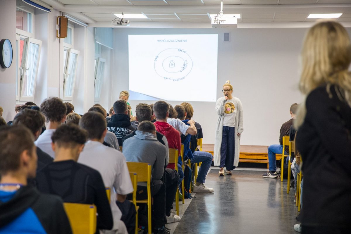 Szczególną uwagę poświęciliśmy naszym uczniom klas pierwszych, którzy wzięli udział w warsztatach prowadzonych przez terapeutów Ośrodka Profilaktyki i Terapii Uzależnień oraz Stowarzyszenia Poznanie. Spotkania te były okazją do rozmowy o emocjach, stresie, budowaniu relacji i sposobach radzenia sobie z trudnymi sytuacjami.
