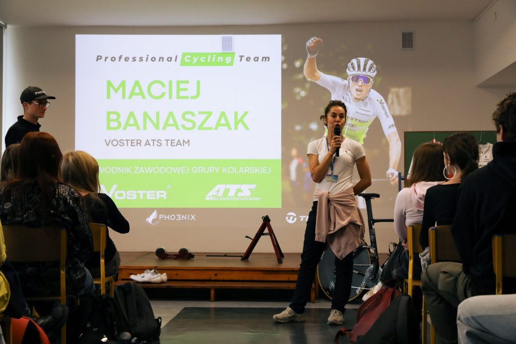 We wtorek odbyło się spotkanie z p. Agnieszką Tereszczyńską – fizjoterapeutką i dietetyczką, która poprowadziła prelekcję „Moje zdrowie w moich rękach”. W środę gościliśmy p. Macieja Banaszaka, zawodowego kolarza szosowego i absolwenta naszej szkoły. Młodzież miała okazję poznać kulisy treningów, porozmawiać z zawodnikiem i spróbować swoich sił na trenażerach rowerowych.