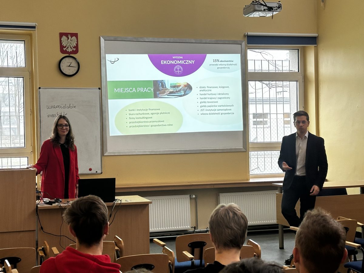 W dniu 26 stycznia 2026 r. naszą szkołę odwiedzili przedstawiciele Uniwersytetu Przyrodniczego w Poznaniu, którzy przeprowadzili inspirujące spotkanie informacyjne dla uczniów, poświęcone możliwościom studiowania, ze szczególnym uwzględnieniem oferty Wydziału Ekonomicznego.