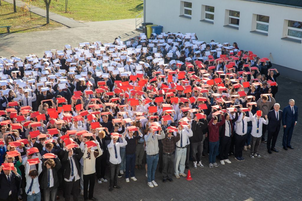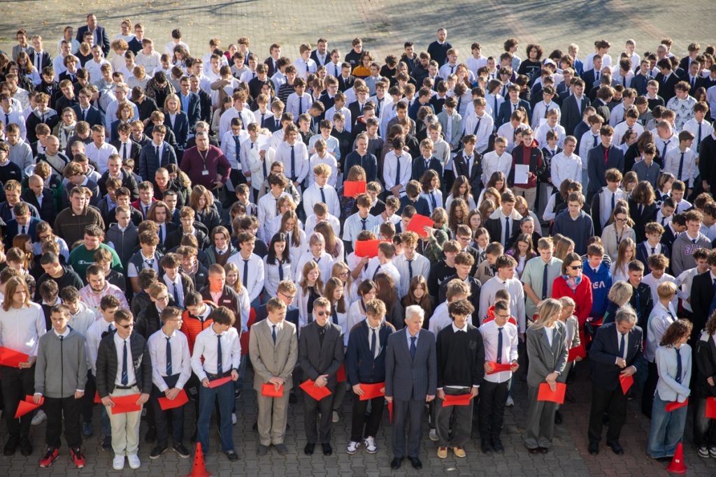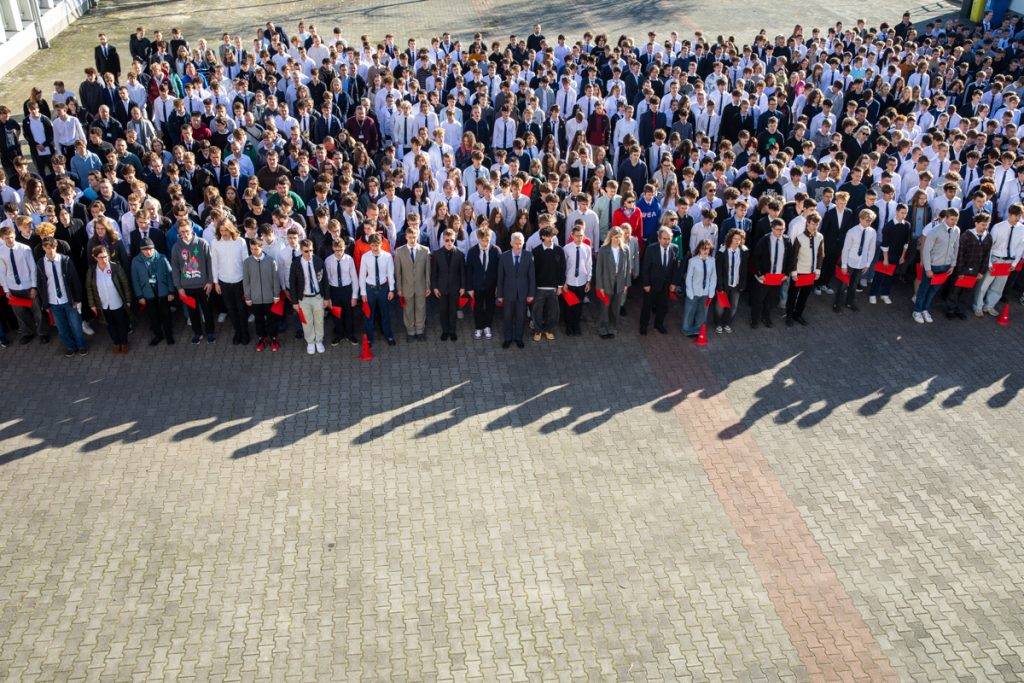 W piątek, 7 listopada 2025 roku, w Zespole Szkół Łączności w Poznaniu odbyły się uroczyste obchody Narodowego Święta Niepodległości. Tego dnia wszyscy uczniowie oraz nauczyciele przyszli do szkoły w strojach galowych, podkreślając w ten sposób rangę i znaczenie wydarzenia. O godzinie 11:00 uczniowie wraz z nauczycielami udali się na dziedziniec szkoły, gdzie wspólnie utworzyli żywą flagę Polski z białych i czerwonych kartek rozdanych przed rozpoczęciem uroczystości. Następnie, w ramach ogólnopolskiej akcji „Szkoła do hymnu”, wszyscy razem odśpiewali „Mazurka Dąbrowskiego”. Po zakończeniu tej części obchodów uczniowie wraz z nauczycielami wrócili do swoich sal lekcyjnych.