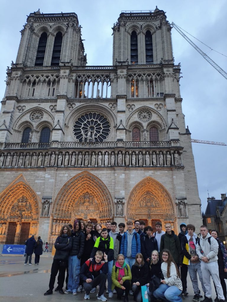 Drugi dzień w Paryżu był jeszcze bardziej wymagający – ponad 30 tysięcy kroków! Uczniowie odwiedzili Dzielnicę Łacińską z Sorboną i Panteonem, spacerowali po Ogrodach Luksemburskich, gdzie mieści się francuski Senat, przeszli przez wyspę La Cité, oglądając Pałac Sprawiedliwości oraz odbudowywaną katedrę Notre Dame. Kolejnymi punktami były Hôtel de Ville, Centrum Pompidou oraz wizyta w Luwrze – miejscu, w którym sztuka, historia i architektura spotykają się w jednym z najpiękniejszych muzeów świata.