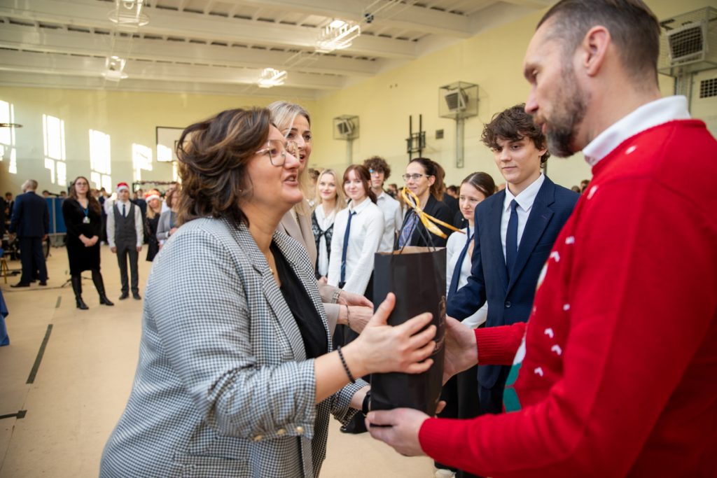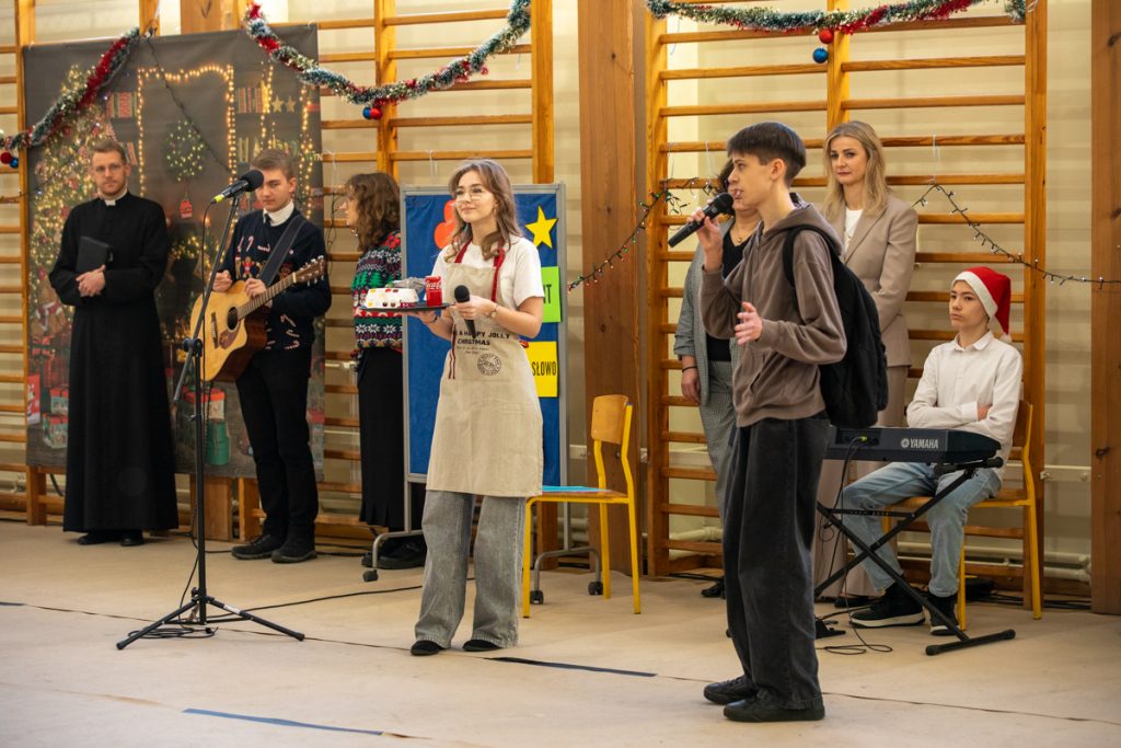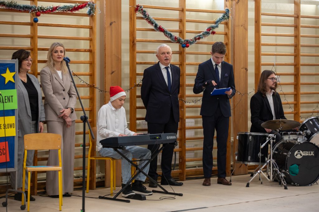 W dniu 19 grudnia 2025 roku w naszej szkole odbyły się klasowe spotkania świąteczne. Wydarzenie rozpoczęło się wspólnym spotkaniem całej społeczności szkolnej na sali gimnastycznej, gdzie uczniowie obejrzeli jasełka bożonarodzeniowe, które wprowadziły wszystkich w wyjątkowy, świąteczny nastrój. Następnie dyrekcja szkoły skierowała do uczniów, nauczycieli i pracowników serdeczne życzenia świąteczne. Każda klasa odebrała również słodki poczęstunek ufundowany przez Radę Rodziców, za co serdecznie dziękujemy. Po części wspólnej każda klasa udała się do swojej sali lekcyjnej, gdzie uczniowie wraz z wychowawcami oraz asystentami kontynuowali świętowanie podczas klasowych spotkań.