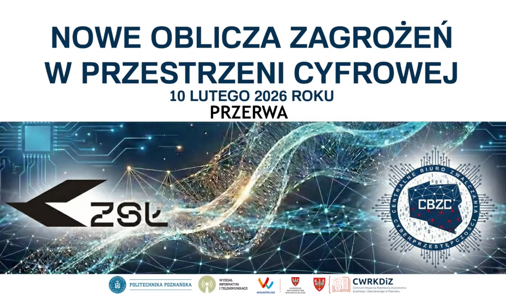 10 lutego 2026 r. na Politechnice Poznańskiej odbyła się konferencja pt. „Wirtualna rzeczywistość uczniów szkół ponadpodstawowych. Sztuczna inteligencja i hejt – nowe oblicza zagrożeń w cyfrowej przestrzeni”, współorganizowana przez Zespół Szkół Łączności w Poznaniu oraz Centralne Biuro Zwalczania Cyberprzestępczości.