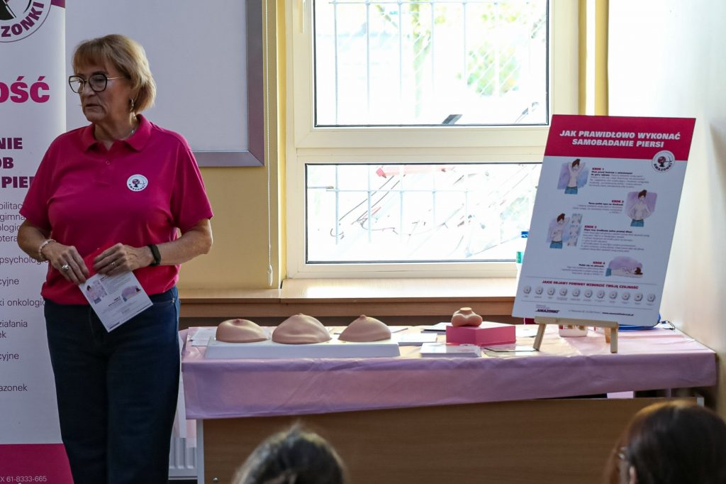 Uczestniczki mogły wysłuchać wartościowych informacji, ale także w praktyce – przy użyciu specjalnych fantomów – nauczyć się, jak wykonywać samobadanie piersi. Spotkanie było przestrzenią do rozmowy o zdrowiu, świadomości siebie i odwadze w dbaniu o własne bezpieczeństwo.