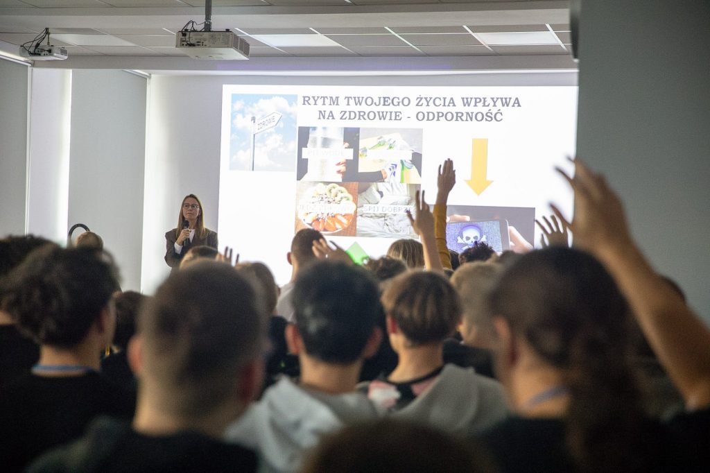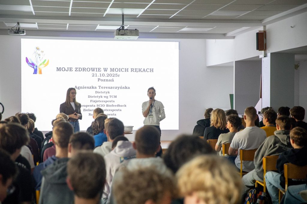 We wtorek odbyło się spotkanie z p. Agnieszką Tereszczyńską – fizjoterapeutką i dietetyczką, która poprowadziła prelekcję „Moje zdrowie w moich rękach”. W środę gościliśmy p. Macieja Banaszaka, zawodowego kolarza szosowego i absolwenta naszej szkoły. Młodzież miała okazję poznać kulisy treningów, porozmawiać z zawodnikiem i spróbować swoich sił na trenażerach rowerowych.