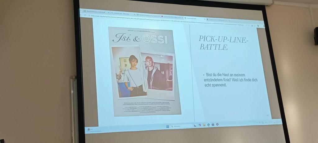 Grupa uczniów uczestniczyła tym razem w warsztatach pod tytułem „Tłumacz w kadrze” i mierzyła się z tłumaczeniem fragmentów rozmów bohaterów niemieckiego filmu Isi&Ossi. Zadanie było nie łatwe, gdyż teksty dotyczyły podrywu młodych zakochanych, jednak wszyscy dobrze się bawili.