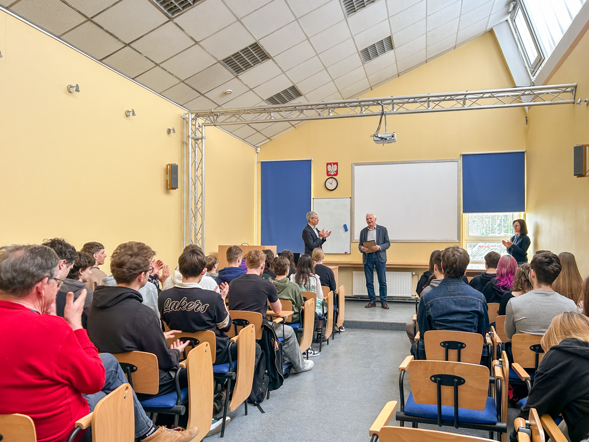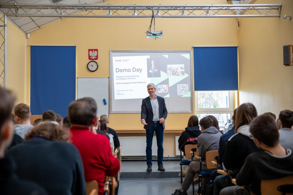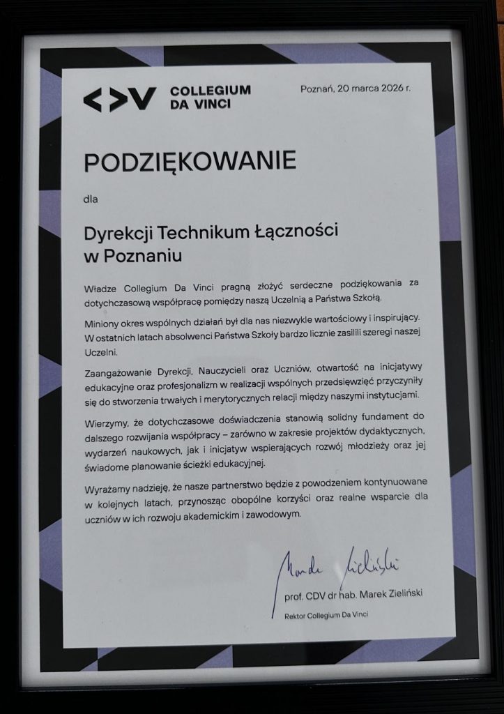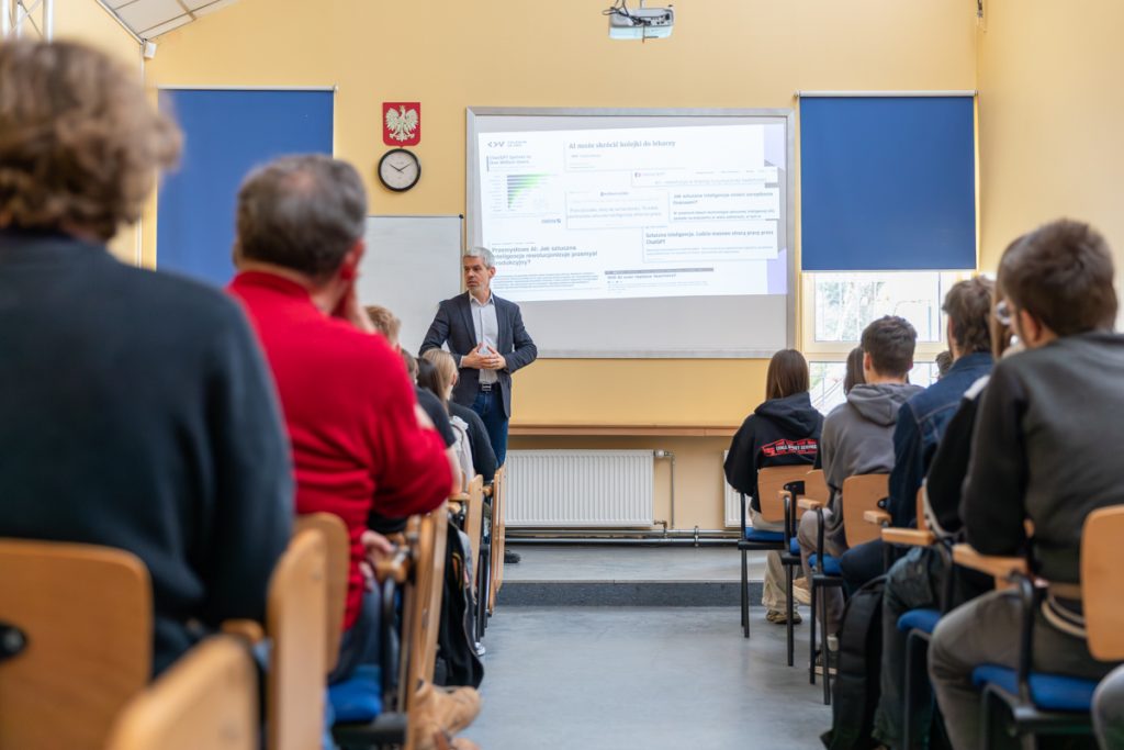 20 marca 2026 roku mieliśmy przyjemność gościć w naszej szkole dr hab. Marka Zielińskiego, rektora Collegium Da Vinci, który spotkał się z naszą młodzieżą i poprowadził inspirujący wykład pt. „Edukacja w erze AI – konieczność czy relikt przyszłości?”.
